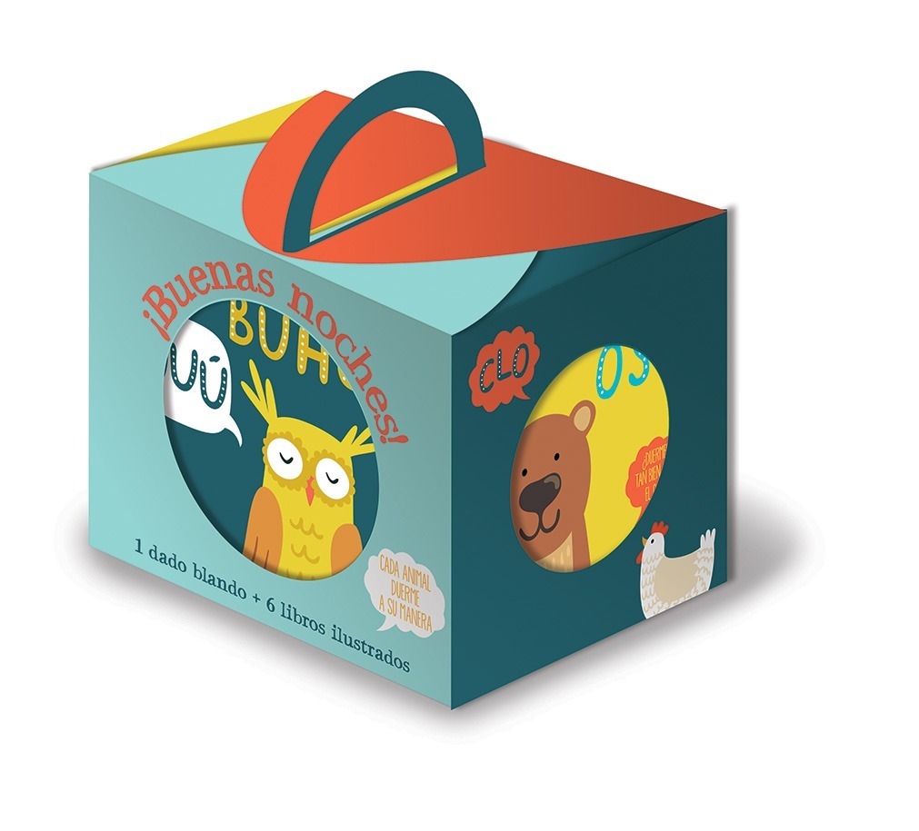 Consta de una caja calada dentro de la que vienen seis libros pequeños y un dado blando.