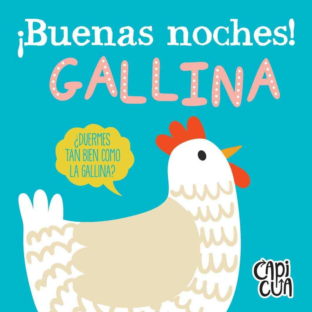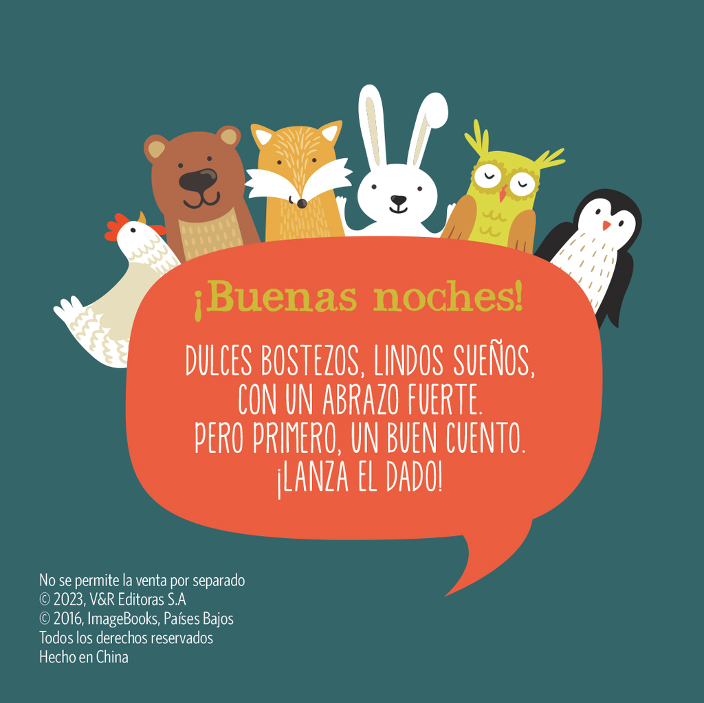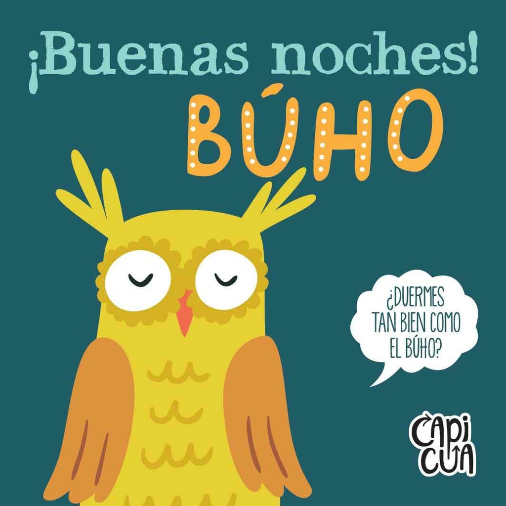 En este título, ¡Buenas noches!, el pingüino, el conejo, la gallina, el oso, el zorro y el búho nos cuentan cómo se van a dormir y nos dan las buenas noches.