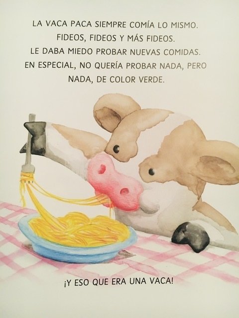 La vaca Paca no se anima a probar nuevas comidas. Solo quiere comer fideos. Pero Mamá Vaca y el resto de los amigos de la granja la ayudarán a comer mejor. Escrito con rimas y con los simpáticos sonidos de los animalitos de la granja, este libro nos invita a leerles a los chicos un cuento como a ellos les gusta: con ruidos, colores y risas. Y así, sutilmente, podemos ayudarlos a que prueben nuevos sabores.
