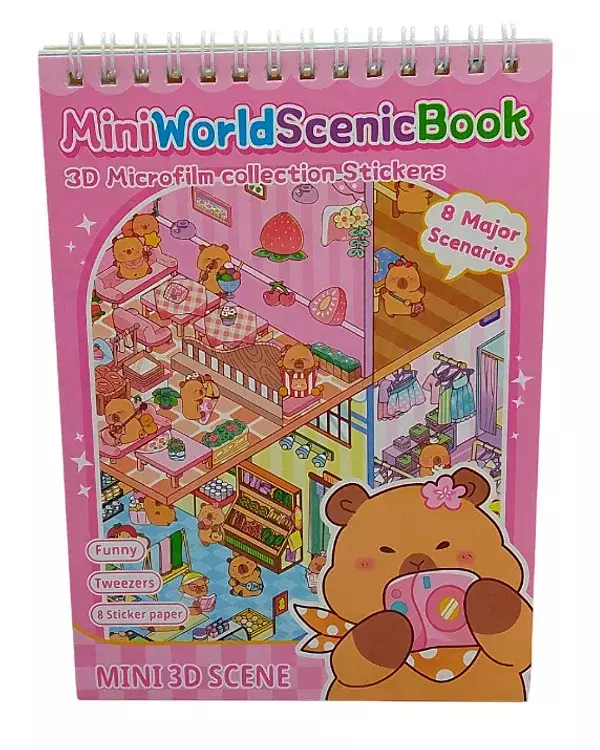 Descubrí el álbum de stickers 3D Mini World, ideal para armar tus propios escenarios con personajes como Stitch y la capibara. Divertite creando y explorando los 8 escenarios disponibles, diseñados para estimular la creatividad y la imaginación.